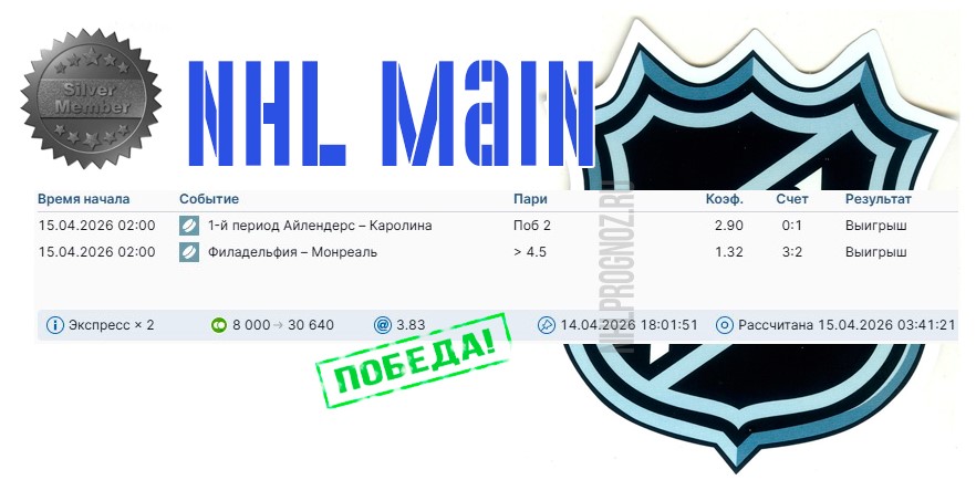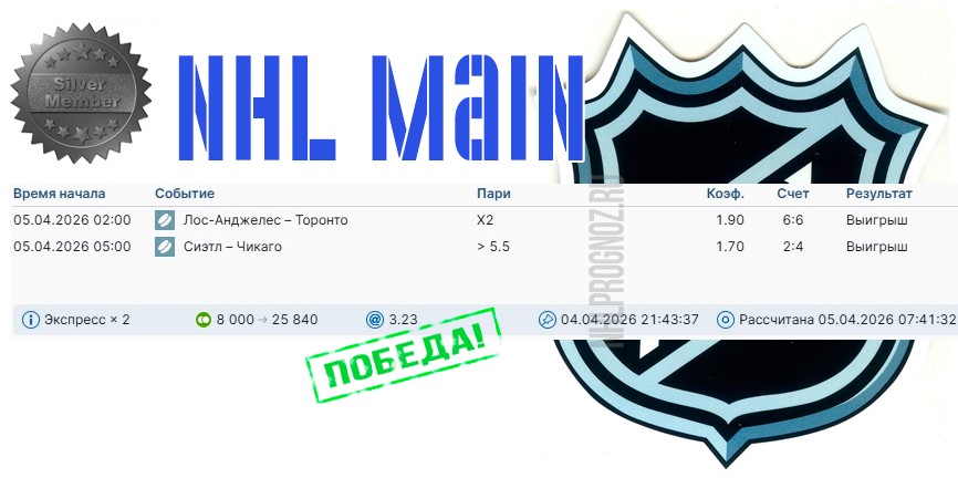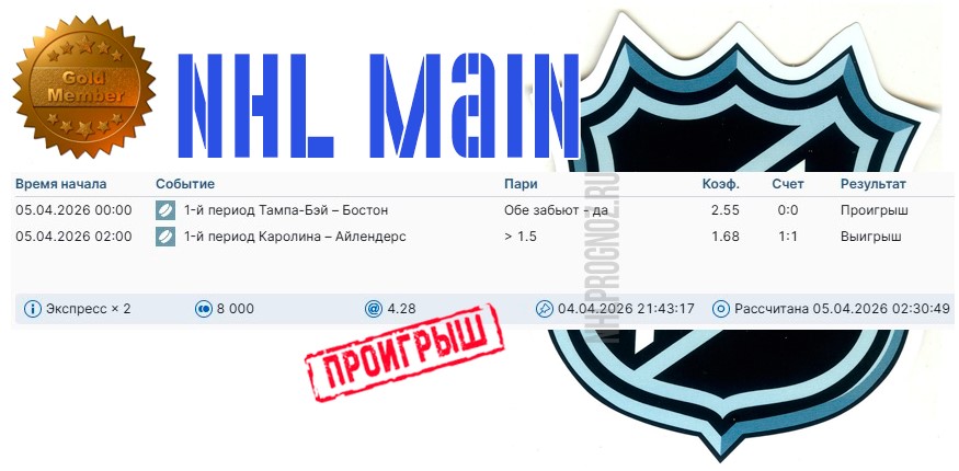 первых периодах, ставки на тотал в матче и исходы. Экспрессы NHL в апреле