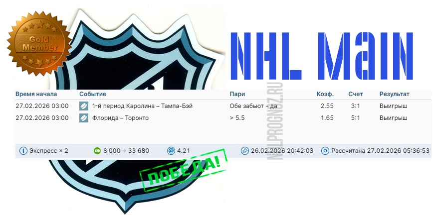 Все основные связки NHL можно купить в розницу (на текущий игровой день) или купить подписку на прогнозы (на 7/15/30 игровых дней). Подписка более выгодней. Вся информация есть в соответствующих разделах.
