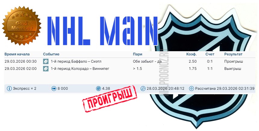 Рабочая ставка в GOLD NHL-связке на текущий день: