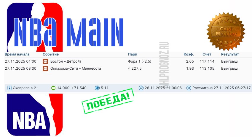 Рабочая ставка в GOLD NBA-связке на текущий день: