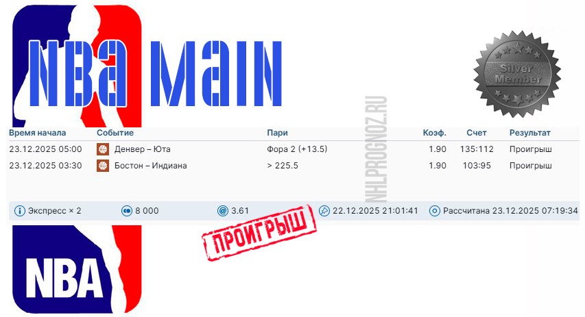 Рабочая ставка в SILVER NBA-связке на текущий день: