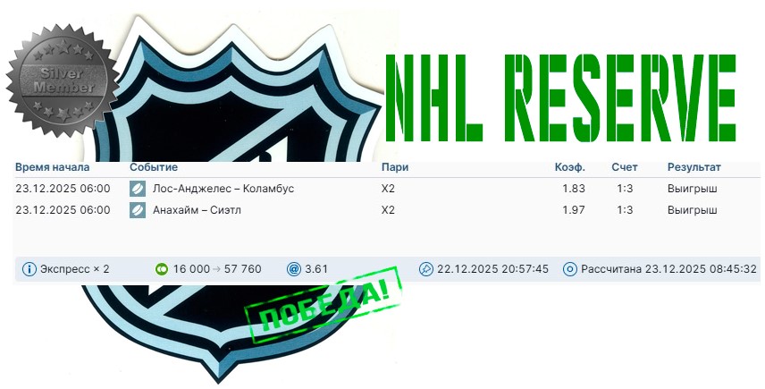 Рабочая ставка в SILVER NHL-связке на текущий день: