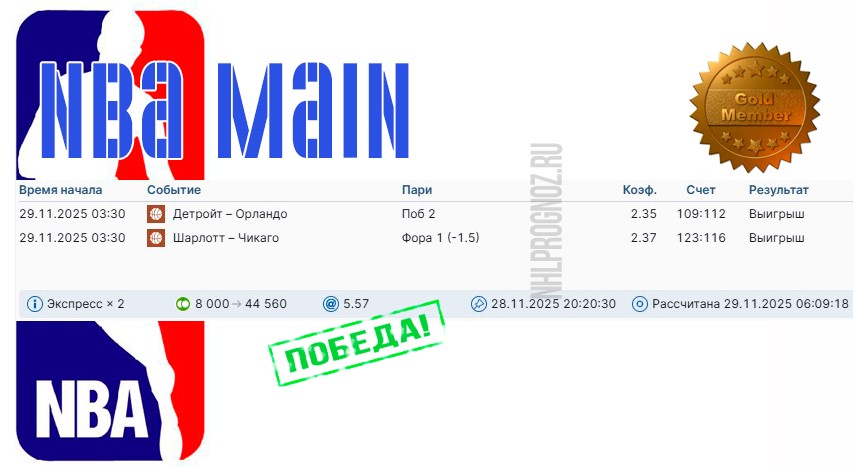 Рабочая ставка в GOLD NBA-связке на текущий день: