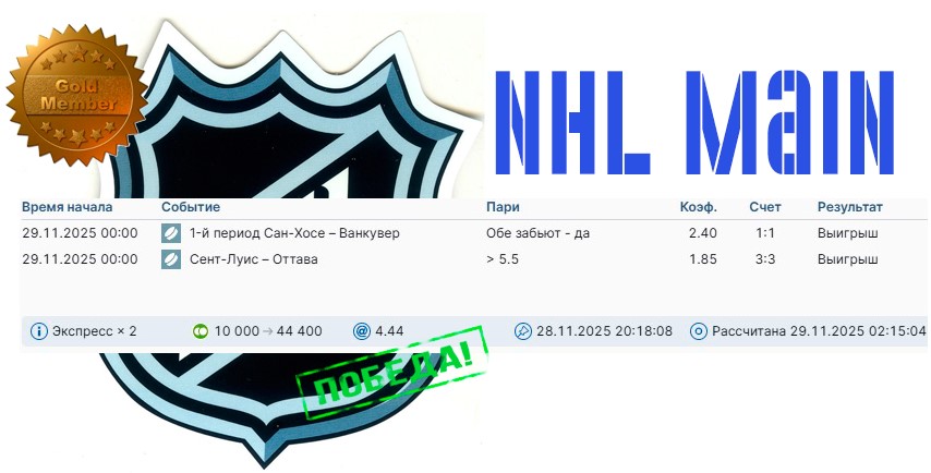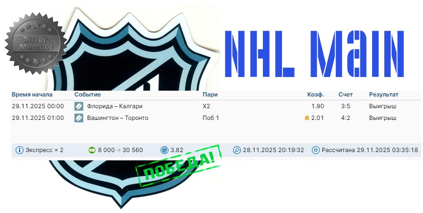 На нашем сервисе можно легко купить прогнозы на НХЛ. Мы играем несколько видов экспрессов. У каждого свой КФ для удобства клиентов.