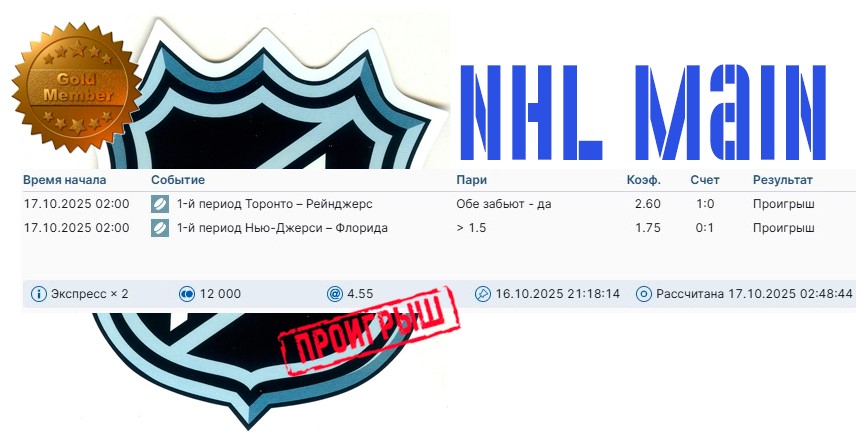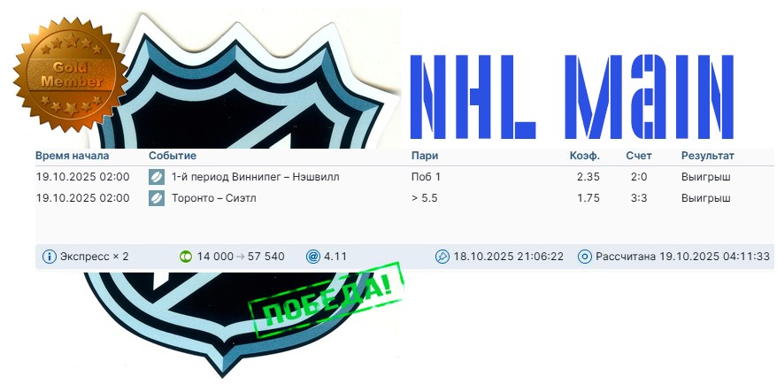 Рабочая ставка в GOLD NHL-связке на текущий день: