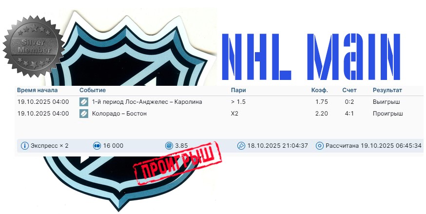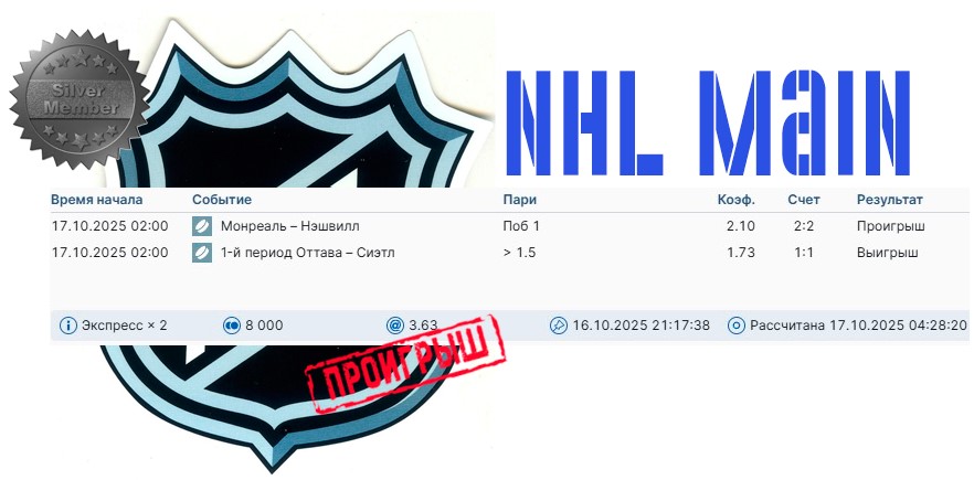 Рабочая ставка в SILVER NHL-связке на текущий день: