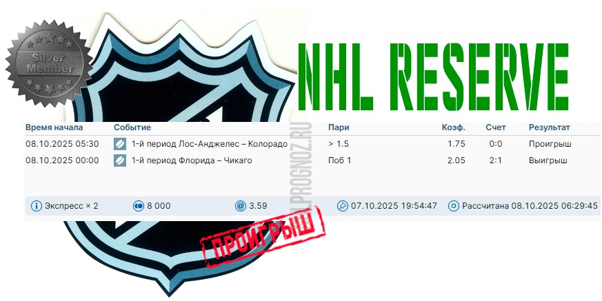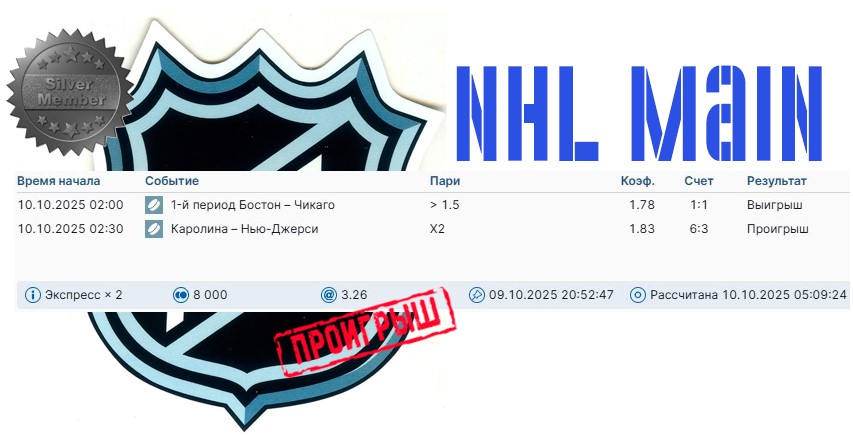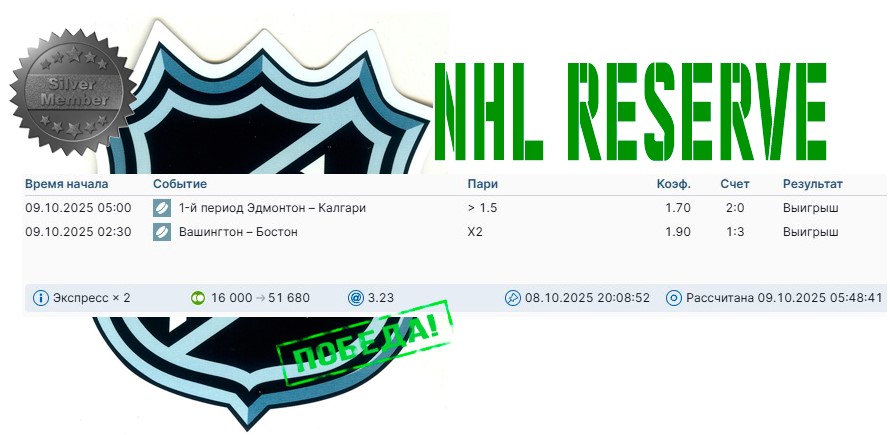 Рабочая ставка в SILVER NHL-связке на текущий день: