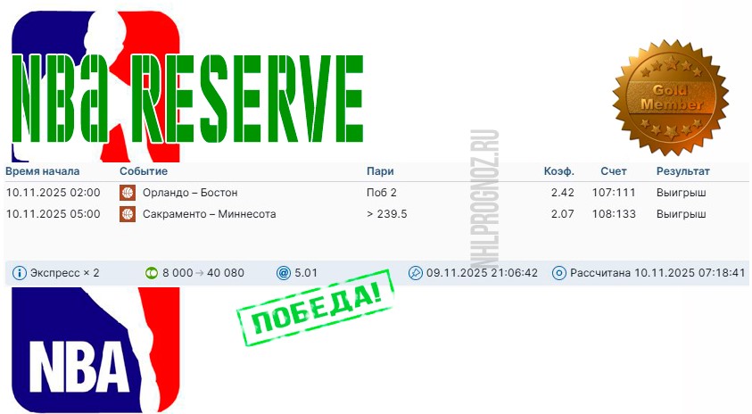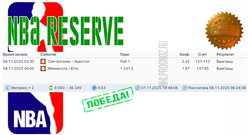 Рабочая ставка в GOLD NBA-связке на текущий день: