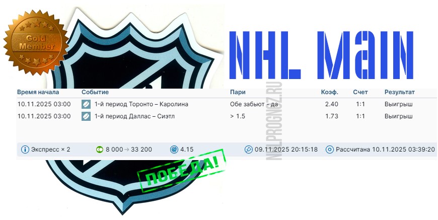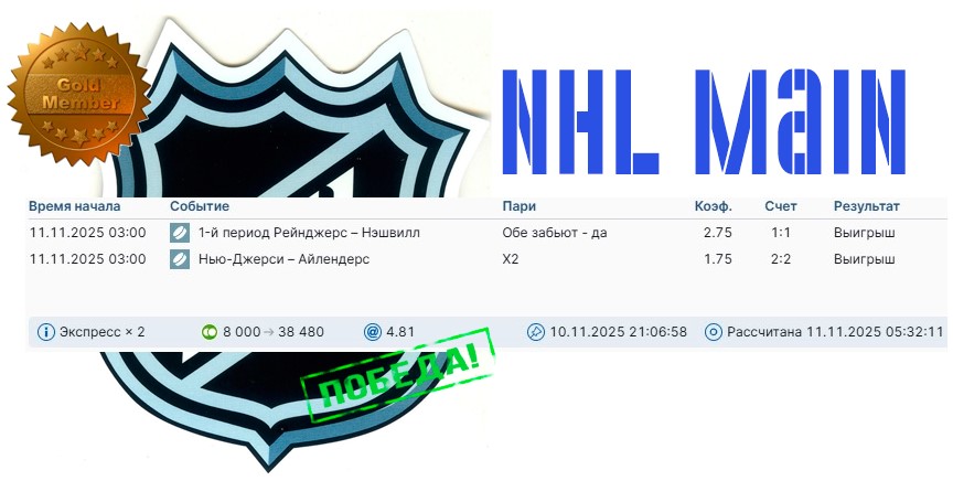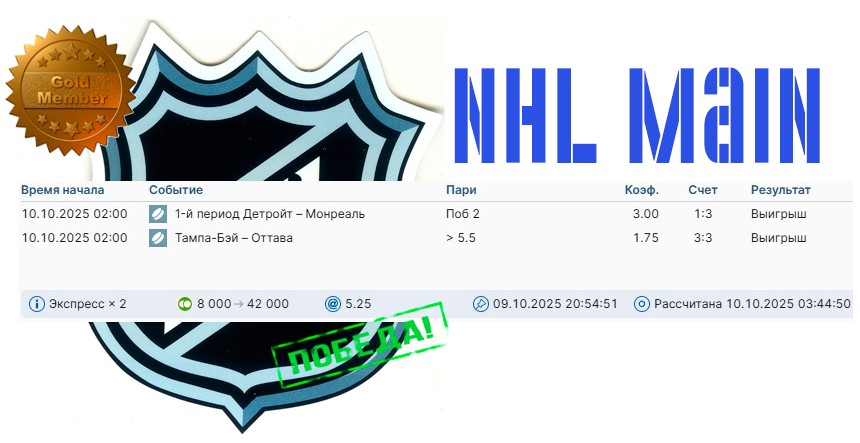 Рабочая ставка в GOLD NHL-связке на текущий день: