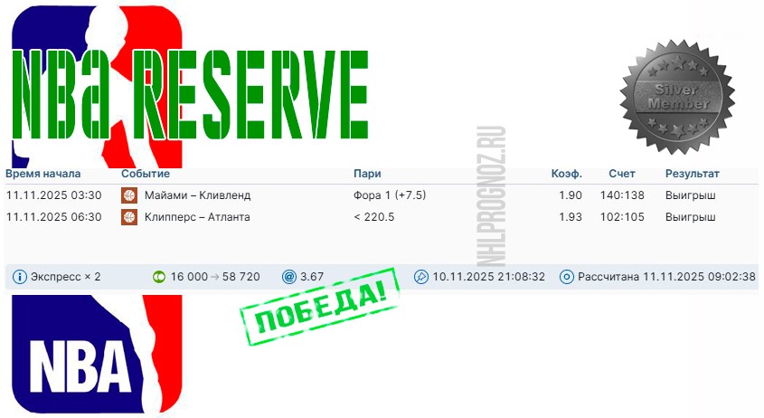 Рабочая ставка в SILVER NBA-связке на текущий день: